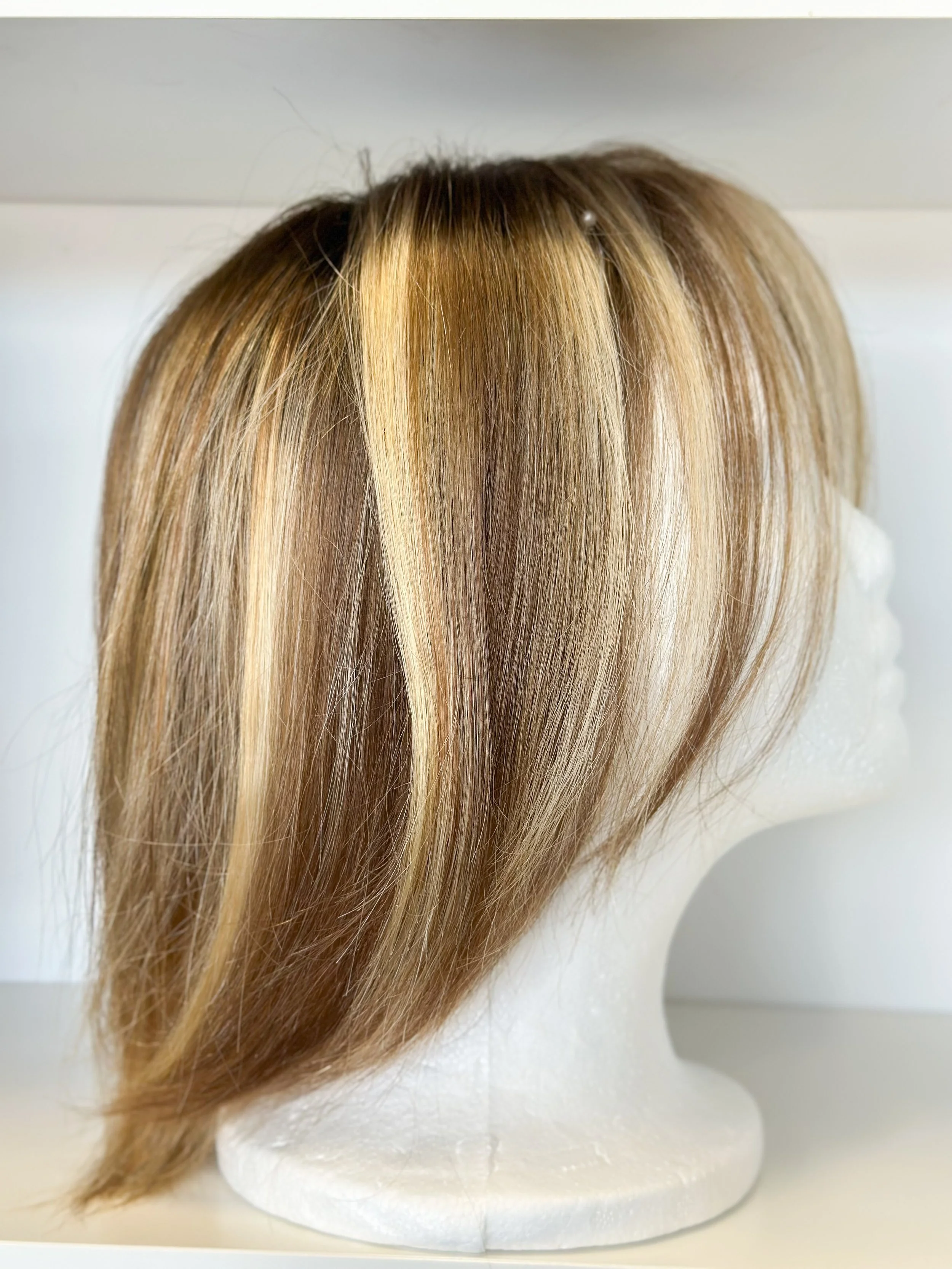 Message me about my custom colored real hair toppers cut to seamlessly blend with your own hair.